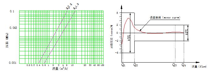 壓力損失曲線(xiàn) Pressure loss curve 示值(zhí)誤差限(xiàn)與流量曲線FLOW-ERROR CURVE