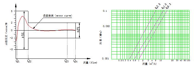 示值誤差限與(yǔ)流量(liàng)曲線FLOW-ERROR CURVE 壓(yā)力損(sǔn)失曲線 Pressure loss curve