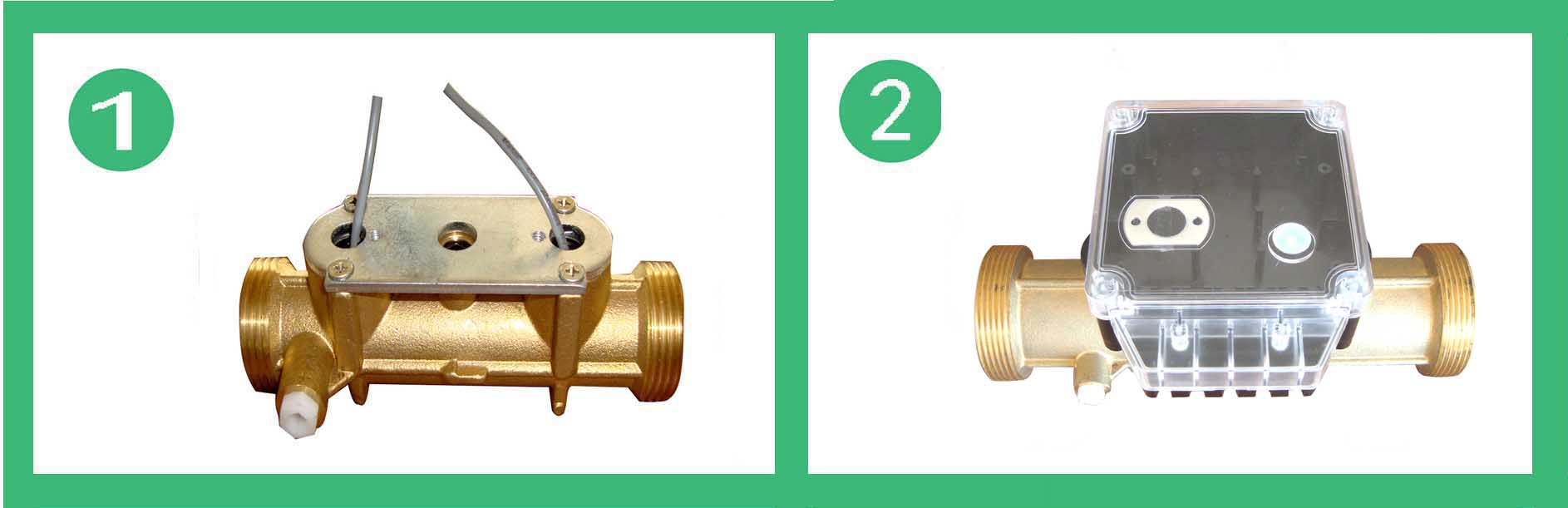 b.樓棟型熱量(liàng)表超聲波流(liú)量計(jì)由表殼、換能(néng)器、換能(néng)器座組成。順流方向和逆(nì)流方向,換能器1或換能(néng)器2發射的超聲(shēng)波信號由換能器2或換能器1接收(shōu)。